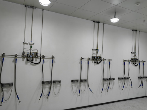 1.氣瓶間內有壓力自動調節控制面板與測試窒內的氣路終端門店相互之間所采用SS316LBA管做銜接,pvc管網內外表面亮澤度為Ra<0.4umBA級pvc管網。